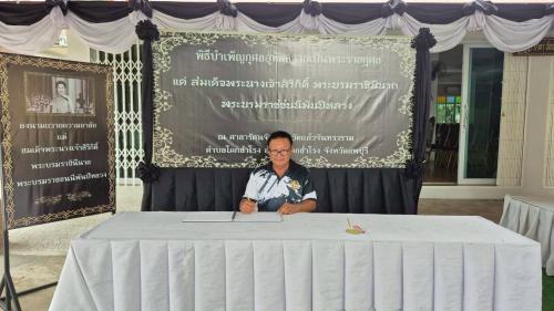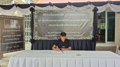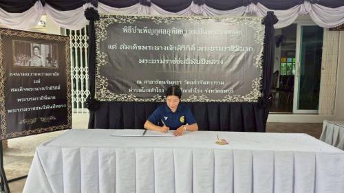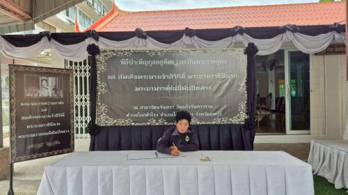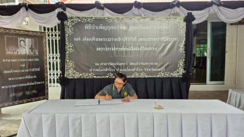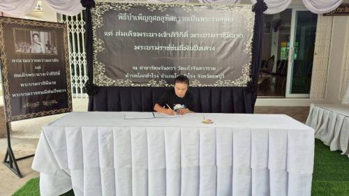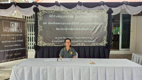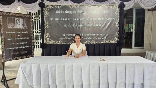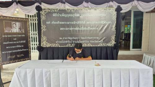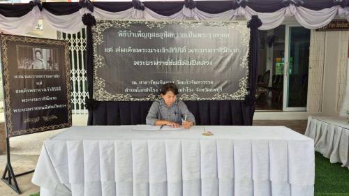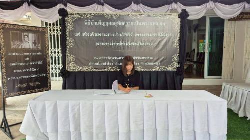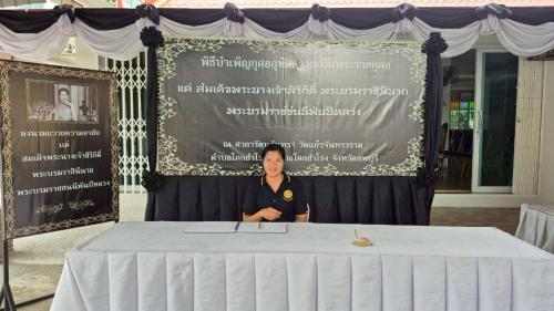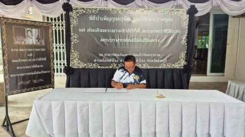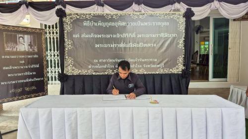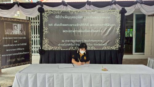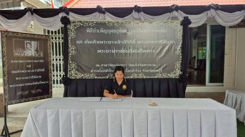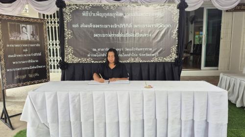 นางสาวจีรารัตน์ พัฒนคูหะ พัฒนาการอำเภอโคกสำโรง พร้อมด้วยนายประถม รั่วลี ประธานเครือข่ายกองทุนแม่ของแผ่นดินอำเภอโคกสำโรง คณะกรรมการเครือข่ายกองทุนแม่ของแผ่นดินอำเภอโคกสำโรง และเจ้าหน้าที่พัฒนาชุมชนอำเภอโคกสำโรง ร่วมลงนามถวายความอาลัยเบื้องหน้าพระฉายาลักษณ์ สมเด็จพระนางเจ้าสิริกิติ์ พระบรมราชินีนาถ พระบรมราชชนนีพันปีหลวง เพื่อแสดงความจงรักภักดี และน้อมสำนึกในพระมหากรุณาธิคุณอันหาที่สุดมิได้