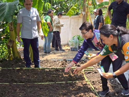 ปลูกผักปลอดสารพิษ เพื่อสร้างความมั่นคงทางอาหาร โดยมีวัตถุประสงค์เพื่อส่งเสริมการน้อมนำหลักปรัชญาเศรษฐกิจพอเพียงมาประยุกต์ใช้ในการดำรงชีวิต ลดรายจ่ายในครัวเรือน ภายใต้แนวคิด “ปรับเปลี่ยนดี ชีวีมีสุข” เเละส่งเสริมการพึ่งพาตนเองตามหลักเศรษฐกิจพอเพียงในช่วงสถานการณ์ค่าครองชีพที่สูงขึ้นในปัจจุบัน